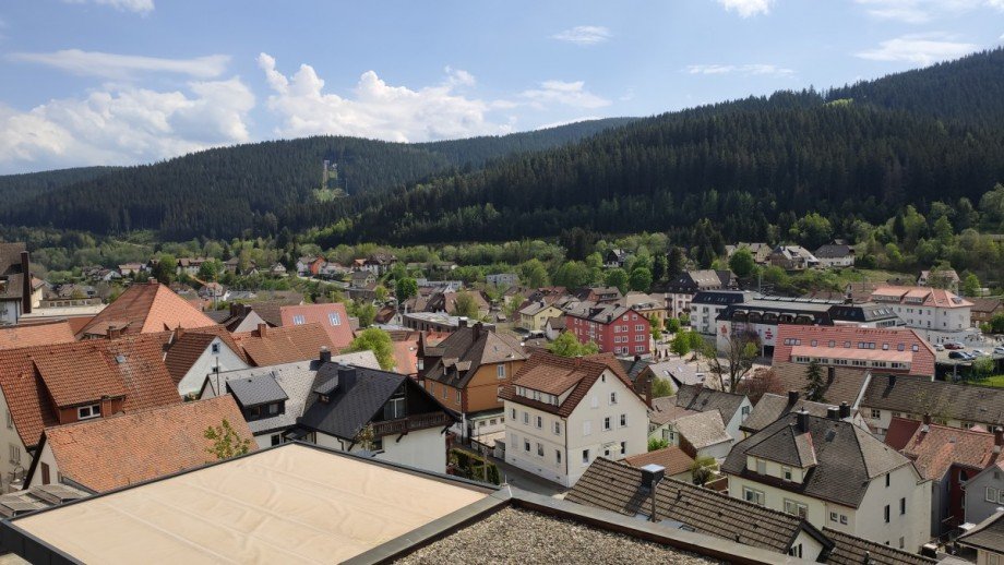 Sie betreten die Wohnung und stehen in einem übersichtlichen Flur mit Zugang zum offenen Wohnzimmer sowie zum Badezimmer. Das Badezimmer ist baujahrestypisch gehalten und verfügt über eine Dusche. Das Wohnesszimmer mit offener Küche ist sehr großzügig und hell gehalten. Von hier aus haben Sie auch Zugang zum Balkon mit traumhaftem Ausblick über die ganze Stadt. Highlight ist der direkte Blick auf die Hochfirstschanze. Vom offenen Wohnesszimmer erreichen Sie das Schlafzimmer und einen kleinen Abstellraum, welcher sich optimal eingepflegt in einer Nische befindet.
